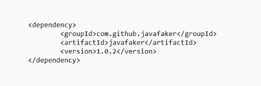 Using the Faker Java library, it is possible to generate a number of test data. You need to add the following dependency in the pom.xml file.